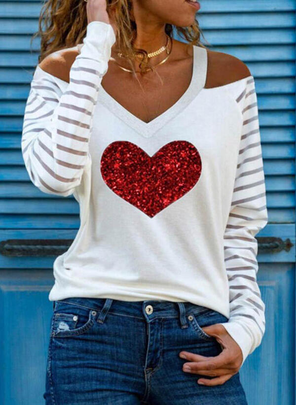 Fashion ladies fashion v off-shoulder printed T-shirt